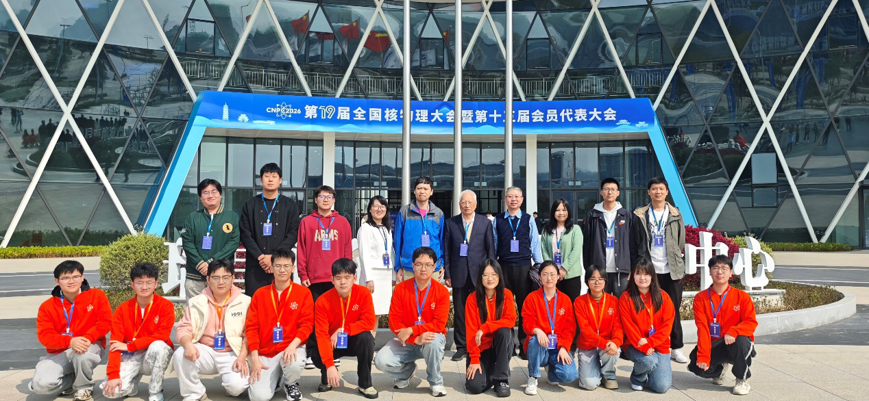 开幕式上,当第一位嘉宾落座,当灯光准时亮起,当流程按着预演的节奏一帧帧推进,那种“一切就绪”的踏实感让我鼻头微酸。我在会场侧方默默看着,心底涌起一股说不出的欣慰,感到一切努力都值了。更让我激动的是报告环节。梁作堂先生站在台上,将粒子物理的前沿图景娓娓道来。他的报告深入浅出,从自旋物理到量子色动力学,那些曾在课本上仰望的名字,此刻变成了鲜活的故事。我坐在最后一排,笔记本记得满满当当,生怕漏掉一个字。那一刻,核物理不再只是书本上的公式,它成了我真正想用一生去追问的事业。在茶歇时,中国原子能院张焕乔院士、李莹副所长亲切接见了我们山东大学吴有训核科学英才班的学生,并给予鼓励和期许!同时,我们有幸和九十多岁的张焕乔老师合影。老先生精神矍铄、神采奕奕。合影后,他拍拍我的肩膀,语重心长地说:“你们年轻人,是核物理的未来啊。”声音不大,却重重地落在我心上。那一刻,我忽然明白了什么叫“传承”——他们用一生铺就的路,正等着我们继续走下去。