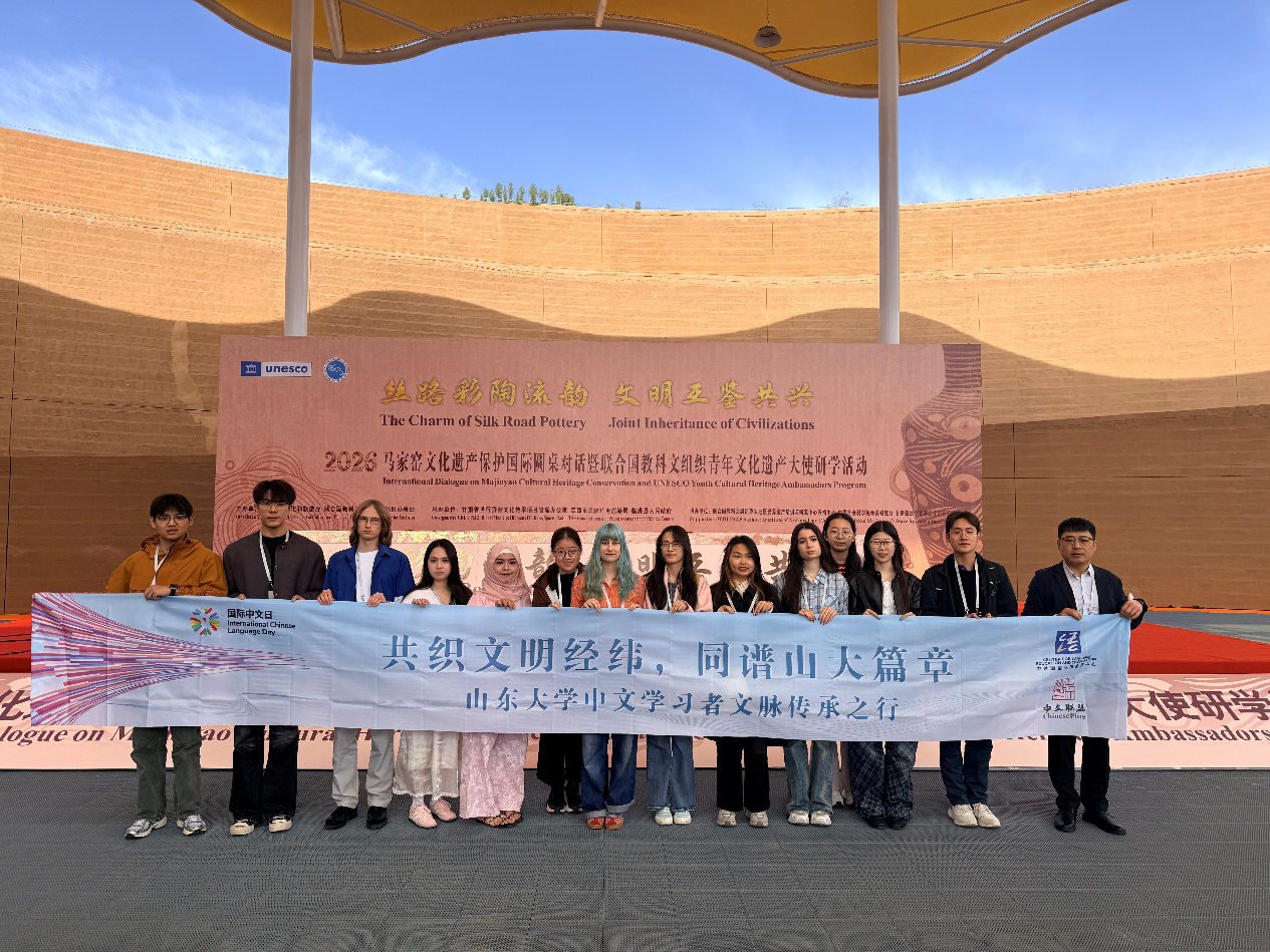 合影环节,我们举着写有“共织文明经纬,同谱山大篇章”的横幅,十几个人站在博物馆前的广场上,有山大的同学,也有来自其他国家的青年大使。拍照前,一位肯尼亚的女生说:“你们中国的彩陶让我想起我们国家的陶罐,虽然样子不同,但那种手摸着泥巴的感觉是一样的。”原来不需要太多翻译和解释,一只陶罐就能让相隔万里的人找到共鸣。