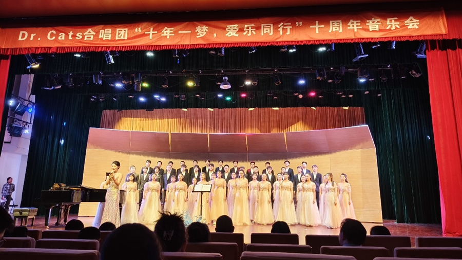 今天天气预报有雨,但是一晚上都特别热,并没有下雨,为今晚的Dr.Cats合唱团“十年一梦,爱乐同行”十周年音乐会提供了良好的环境条件。
