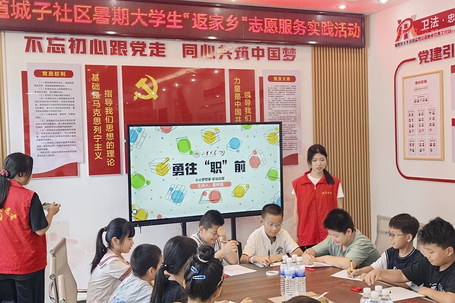 七月的热风裹着蝉鸣掠过街道。作为添翼梦工厂社会实践项目青岛地区主讲人,我和队员陈俊羽带着准备好的教具和给小朋友的礼物,走进了城子社区居委会。此行不仅是一场简单的“讲座”加“互动”,更是我们团队响应“教育公平”理念,将职业启蒙资源向基层社区延伸的一次实践。