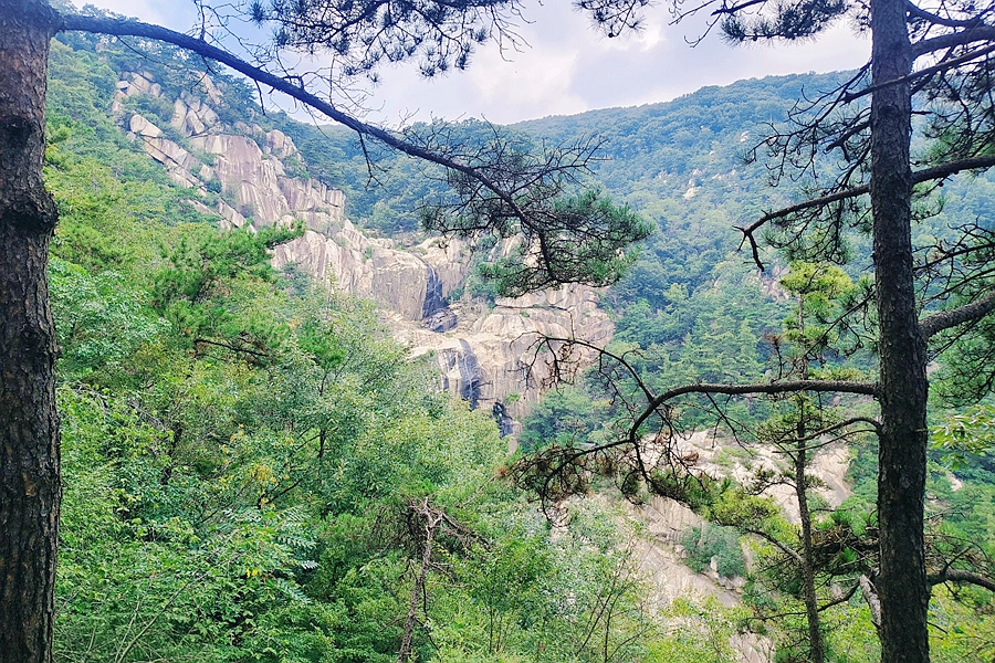 爬到半山腰,脚下的石阶像被太阳烤软的糖块,每抬一步都格外沉重。孩子们的欢笑声早被粗重的喘息取代,小脸红得像熟透的樱桃,额前碎发浸在汗里黏成一绺。我扶着老树干喘气,T恤后背已洇出深色汗渍。抬头望,山顶藏在蒸腾的热气里,像幅模糊的水墨画。