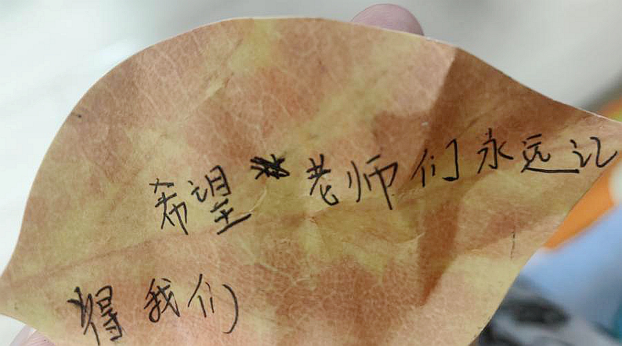 他一步三回头,小小的身影最终消失在校门拐角。我强忍着眼泪握紧他最后塞给我的、汗湿了的树叶便签,上面是他小小的心愿:“希望老师永远记得我们。”