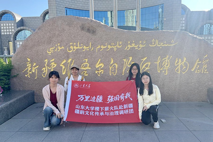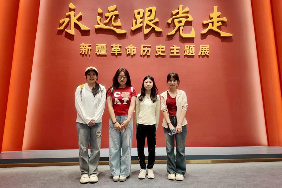 今天,我作为山东大学“万里边疆 强国有我”稷下薪火实践队的一员,和队友们一起走进了新疆博物馆的“永远跟党走——庆祝中国共产党成立100周年新疆革命文物展”。这是一次意义非凡的参观,通过沉浸式的体验和互动式的学习,我在百年党史的立体呈现中深深感悟到了信仰的力量,也在边疆发展的生动实践里厚植了家国情怀。这次活动是我们实践队“红色边疆行”专项调研的重要环节,也是我们高校青年学子用专业所学服务边疆文化传承的一次创新实践。