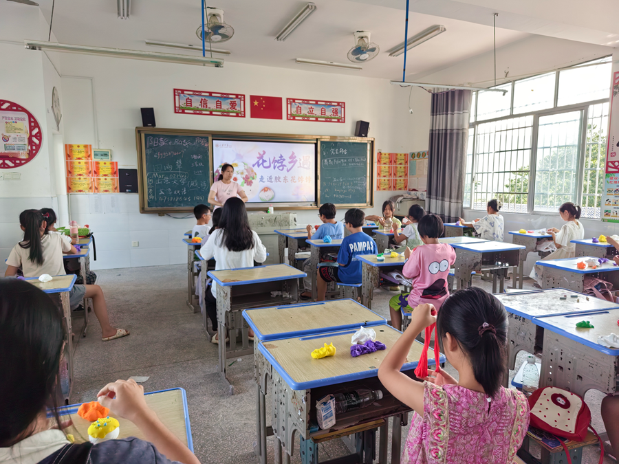 阳光洒在湖南永州五里牌镇中心小学的教室里,仿佛飘起了淡淡的“麦香”。今天,我作为山东大学花饽乡遇社会实践团的非遗文化宣讲者,为孩子们讲授一堂主题为胶东花饽饽的非遗文化课。希望通过讲解、展示、互动,让孩子们亲手触摸到跨越千里的山东民俗文化温度。
