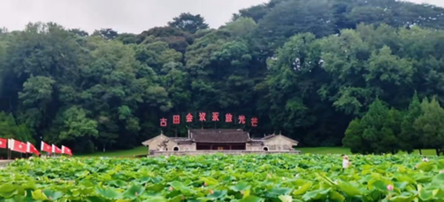 清早,天刚泛白我便匆匆出门,背包里塞着相机和笔记本,沉沉压在肩上,奔向前往龙岩的动车。窗外的绿被雨水冲刷得格外浓重,蜿蜒的盘山路像一条湿漉漉的带子,引着我走向那座藏在闽西群山怀抱里的纪念馆。窗外连绵起伏的闽西青山翠岭,像是大地凝固的绿色波涛,一路被列车匆匆翻阅而过。到达古田会议纪念馆前,我抬头仰望,“古田会议永放光芒”几个大字熠熠生辉,瞬间点燃了我心底的某种期待。