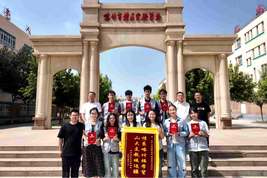最让人感动的是队长乃再尔和段老师拿出早已准备好的锦旗。鲜红的绒面上,“情系喀什播希望,山大支教暖边疆”几个金字熠熠生辉,还为我们颁发了荣誉证书,当我接过那本沉甸甸的荣誉证书时,大家都很激动。这不是一份普通的证书,而是教育馈赠的珍贵礼物。