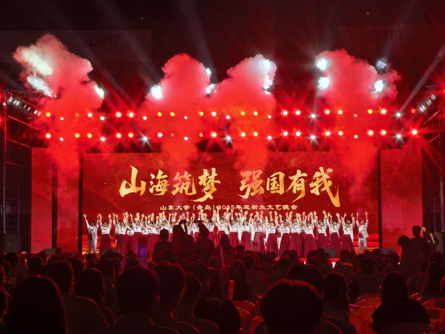 我们看见台下新生们眼中闪烁的光,听见自己的心跳和着“我爱你中国”的节奏,与身边队友的心跳汇成同频的鼓点。最后一个音符落下,红色烟雾在舞台上腾起,掌声如潮水般席卷全场时,我们知道,交出了一份属于山大跨院学子的家国答卷。