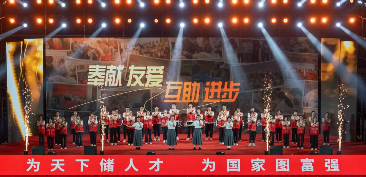 曲终,掌声雷动。我鞠躬时,看见大屏幕上定格在“奉献友爱进步互助”八个字上。走下台的瞬间,节目的策划者跑过来和我击掌,眼里闪着光。我知道,这个夜晚的主角从来不是我一个人,而是屏幕里、舞台下、每一个用行动传递温暖的志愿者。