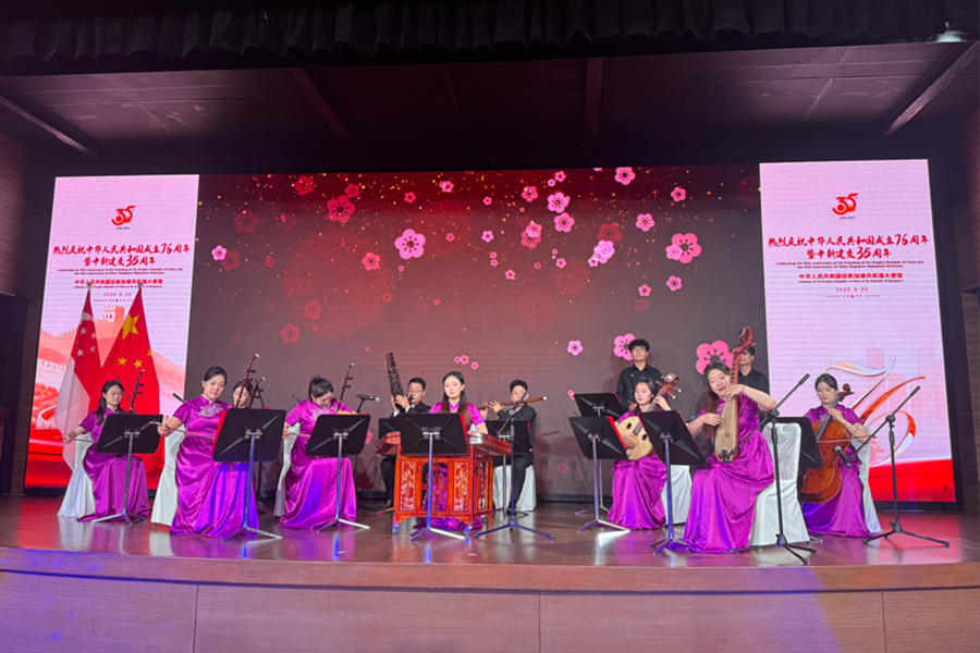 应中国驻新加坡大使馆邀请,山东大学民族乐团在结束了2025年7月的东南亚巡演之后再度抵达狮城,参演“庆祝中华人民共和国成立76周年暨中新建交35周年”庆典晚会。这一次,我们带着精心打磨的“中国声音”,要以音符为笔,讲述独属于我们的文化故事与民族情感。