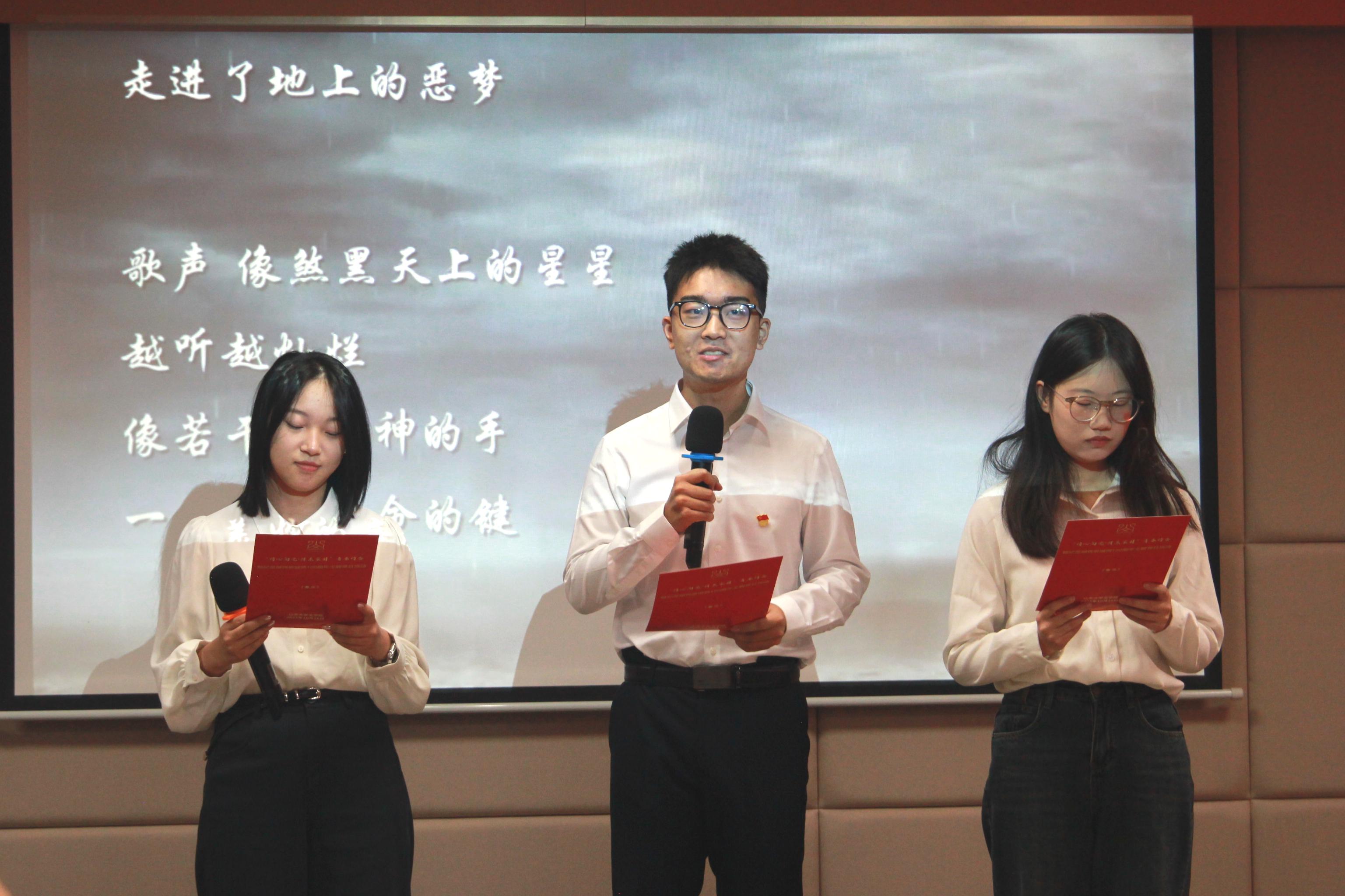 活动尾声,郭春晓书记在总结时叮嘱我们把诗句中的家国转化为行动中的担当,让我们青年党员更明确了前进方向。当我宣布活动结束时,台下响起热烈的掌声,我知道,这场以诗为媒的盛会,不仅纪念了一位文学巨匠,更在我们心中种下了一颗扎根人民、奉献自我的种子。作为新生党支部,我们定会以今日之感悟为起点,在党的引领下,成长为有初心、有担当的青春集体,为母校的荣光、为时代的发展,写下属于我们的“青春诗篇”。