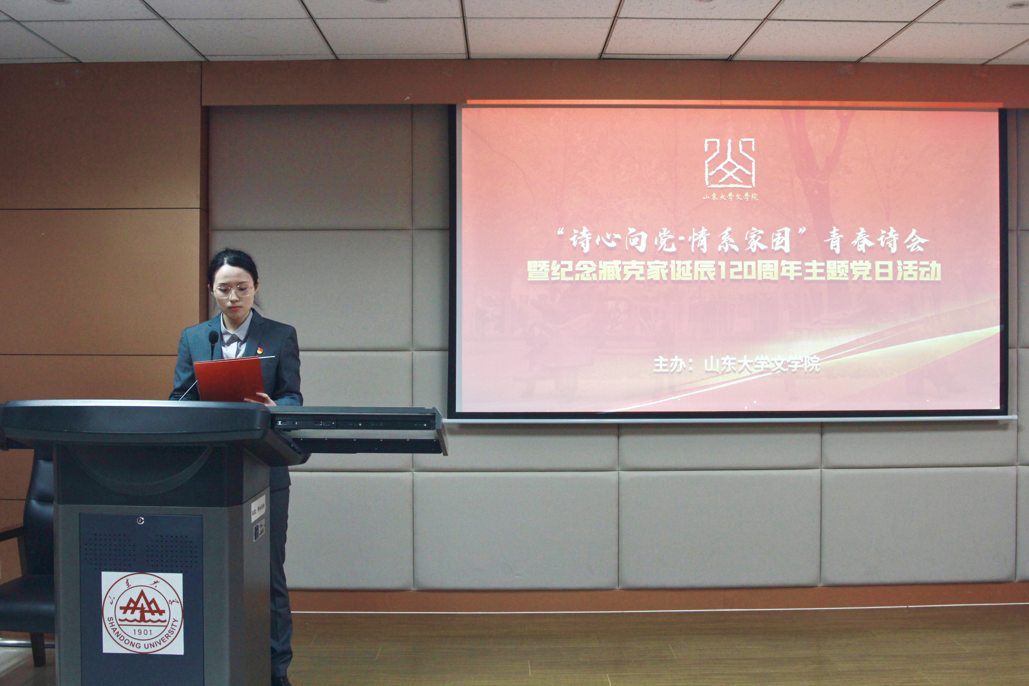 今年10月8日是臧克家先生诞辰120周年纪念日,10月15日是我们共同的母校山东大学124周年校庆。在这个特殊的时间节点,我以主持人的身份,参与并见证了一场“诗心向党・情系家国”的青春诗会暨纪念臧克家先生诞辰120周年主题党日活动。