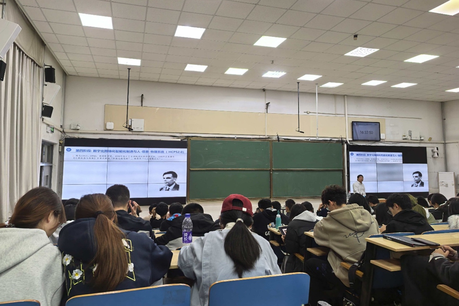 老师耐心地解答道:“人工智能不是替代某个专业,而是赋能所有专业。”他具体分析,对机械专业来说,我们的核心任务是抓住AI发展的风口,让技术为专业赋能,实现1+1>2的效果。为了让我们更好地理解,他翻到下一页PPT,展示了团队的数字孪生项目:“我们先构建工厂的虚拟孪生体,在虚拟空间中优化设计方案,再落地建造实体工厂,后续通过传感器实时传输数据,不仅降低了成本,还大幅提升了效率。”