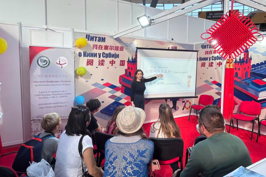 10月底,中国驻塞尔维亚使馆与契戈亚出版社在贝尔格莱德国际书展共同设立“我在塞尔维亚阅读中国”图书专区,并举办“中国日”主题活动。书展现场,贝尔格莱德孔子学院特别设立“汉语体验课”互动专区,作为孔子学院的志愿者,能在现场沉浸式感受这场文化盛宴,我倍感幸运与欣喜。