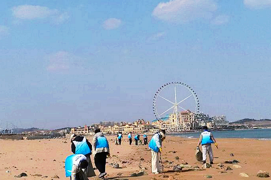 沿途,层层叠叠的蓝色海浪拍打着礁石,溅起雪白的浪花。秋意染红了树梢,草木也悄悄换上了秋装。这是我第一次参加净滩活动,起初还担心海风凛冽、衣衫单薄。然而,一路步行,三公里的路程仿佛一场热身,走到目的地时,全身已被暖意包裹。有同学好奇:“净滩地点为什么选在这,咱们学校一出门不就是海滩么?”领队解释道:“学校门口的海滩离着近,平常很多同学注意到垃圾就捡了,但是这边离得远,游客遗留与海浪冲来的垃圾往往很少有人注意到,先徒步半小时,既热身,也更有干劲。”我恍然大悟,心中更添一份责任感。