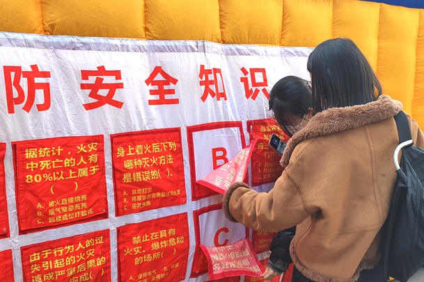 最后的消防知识小问题抢答,气氛非常热烈。很多问题,比如“手机充电器不拔会不会引发火灾”“灭火器上的压力表指针在哪个区域是正常的”,都和我们日常生活紧密相关。因为刚刚亲身经历过模拟场景,大家回答的积极性特别高,很多安全常识也在欢声笑语中印在了脑子里。