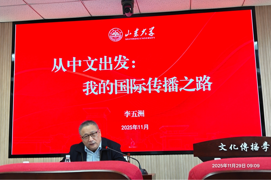 上午九点,山东大学文化传播学院校友高端论坛的首讲在文学楼拉开帷幕。我们有幸聆听了1988级中文系校友、外文局欧非传播中心副主任李五洲学长带来的报告。初冬的阳光透过玻璃窗洒入教室,与学长真诚而温暖地分享交织在一起,让这个周六的早晨显得分外充实。