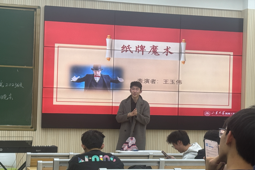 今夜,学院举办的元旦联欢晚会如约而至,教室灯光璀璨,欢声笑语驱散了冬日的寒意,也为即将到来的新年添上了最热烈的一笔。整场晚会亮点纷呈,而最让我久久难忘的,莫过于击鼓传花的热闹与王玉伟同学的魔术表演。在欢声笑语里,我真切感受到了同窗情谊的真挚,也体会到了这个集体独有的温暖与力量。