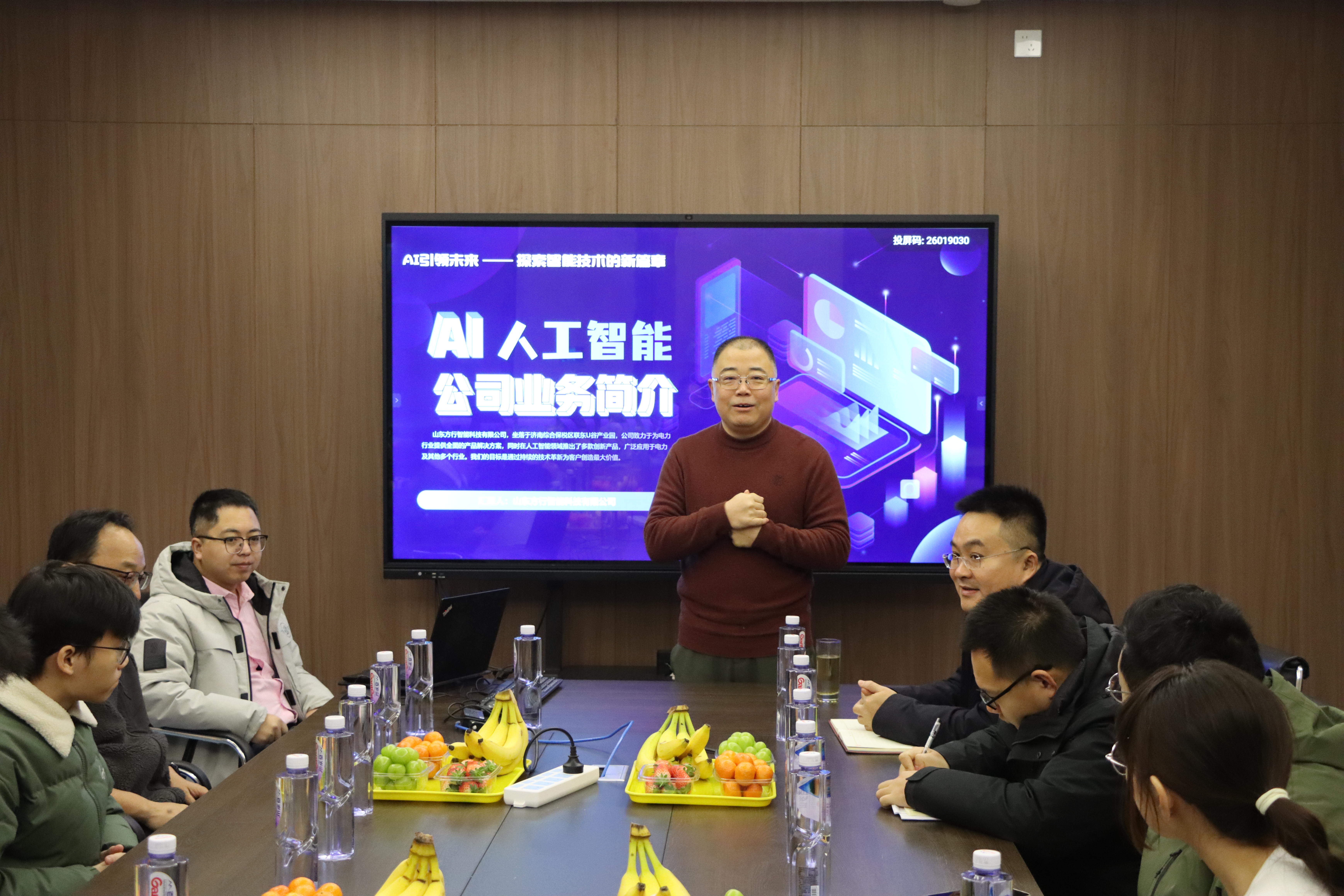 随后,公司董事长李新先生致欢迎词。作为山大硕士毕业生,他重点介绍了方行智能深耕人工智能与电力系统融合、发力光伏储能等新能源领域的历程,还热烈欢迎学院学生前来研究实习。这让我深切感受到,这正是我们自动化专业可深耕的方向,对未来企业实践充满期待。