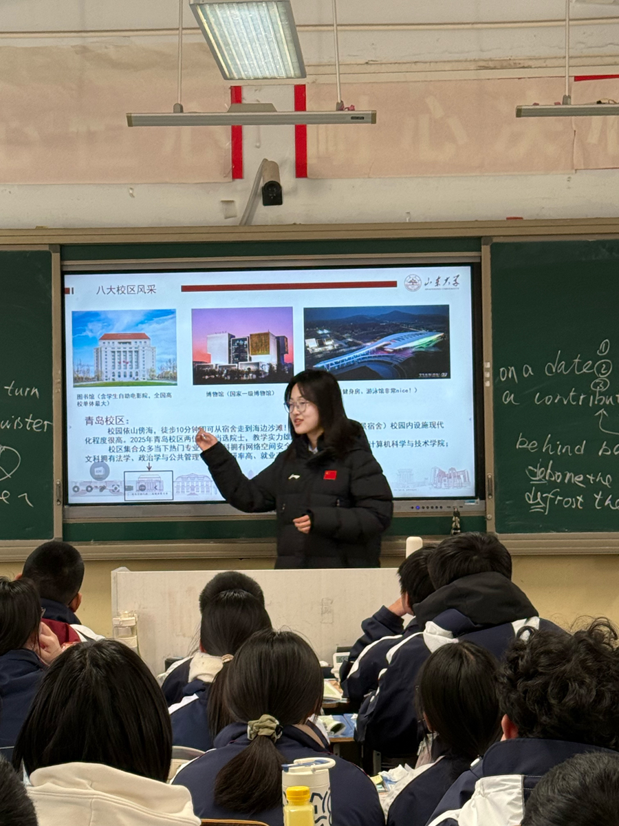 互动环节中,师弟师妹们的热情超出了我的预期。他们纷纷举手提问,有的询问山大的招生政策、录取分数线,有的请教具体科目的备考方法,还有的好奇大学生活的点点滴滴。我耐心地一一解答,真诚地分享自己的心得与感悟,鼓励他们树立明确的目标,勇敢地追逐属于自己的未来。看着他们若有所思的模样,我心中涌起一股暖流,仿佛自己的付出都有了意义。