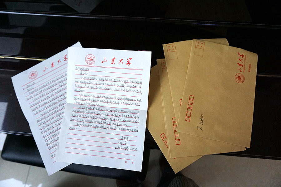 为了让这场对话多一份真诚的温度,早在期末周我们就收集了学弟学妹们藏在心底的疑问,亲手写下一封封回信。落笔的每一字、每一句,既是在回应他们的困惑,也仿佛在对话当年那个坐在台下、心怀忐忑的自己。除了准备好的宣传册和“赴约卡”,我还特意带上了自己镜头里的山大——那一张张小小的胶片,印着五百公里外文化西路180号的四季光影,也递出了一份可以握在手里的向往。