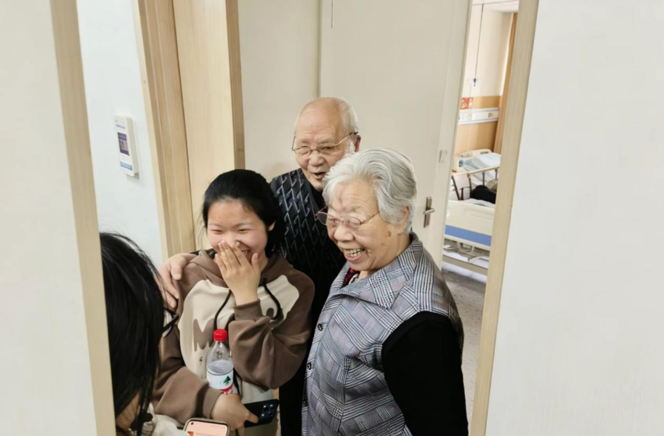 在护工的协助下,团队成员帮几位老人量了血压,数值都比暑假时平稳了许多。“多亏你们上次来给我们讲那些健康知识,现在吃饭、睡觉、运动都有数了,身子骨也轻快了!” 李奶奶握着我的手,粗糙的掌心满是温度,像春日里的暖阳,说着把我拉到身边,说要拍一张合照纪念。我看着老人们脸上舒展的笑容,觉得那些在寒假里一遍遍重复的科普、一笔笔记录的问卷,早已在时光里生根发芽,变成了他们实实在在的健康与欢喜。