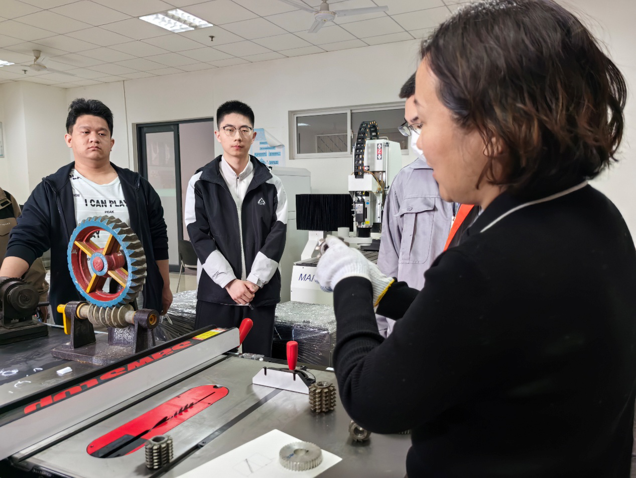 刚进实验室,我就被一排排透明外壳的齿轮变速机构吸引了。老师先带着我们拆解了变速机构的原理,我蹲在机器旁,看着同学操作手柄、调整齿轮啮合。不同大小的齿轮啮合,转速就会跟着变化,大齿轮带动小齿轮,转速瞬间提升,小齿轮带动大齿轮,就能输出更大的扭矩,这种看得见、摸得着的机械,比书本上的推导好理解太多。我伸手摸了摸齿轮的齿面,能感受到加工留下的细微纹路,也明白了变速机构对插齿机的重要性。只有精准控制转速,才能保证齿轮加工的精度。