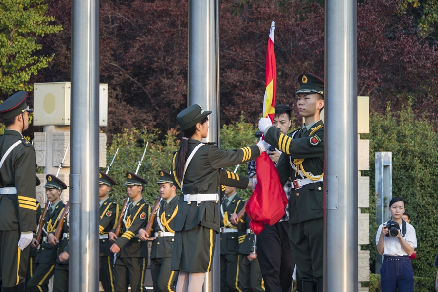 这六幅图于2019年10月1日拍摄于山东大学中心校区大成广场升旗仪式。2019年10月1日上午7时,为庆祝中华人民共和国成立70周年,山东大学举行“我与祖国共奋进——国旗下的演讲”特别主题团日活动,山东大学迎国庆升国旗仪式于中心校区大成广场举行。在众师生庄严的注目礼中,那抹红色承载着所有中华儿女的赤诚之心缓缓上升。